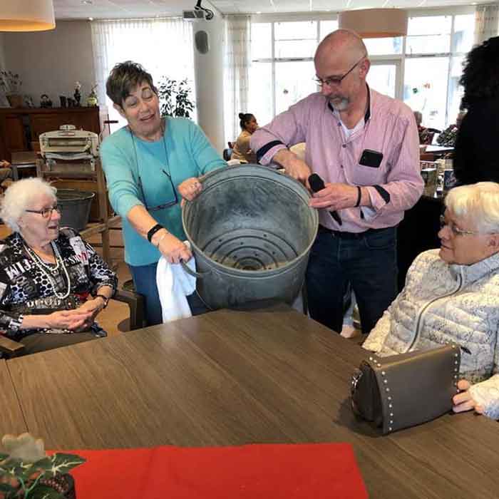 Elke keer weer een feest van herkenning als we in de verzorgingshuizen en bij seniorenverenigingen ons arsenaal oude gebruiksvoorwerpen en verdwenen merken uitstallen.