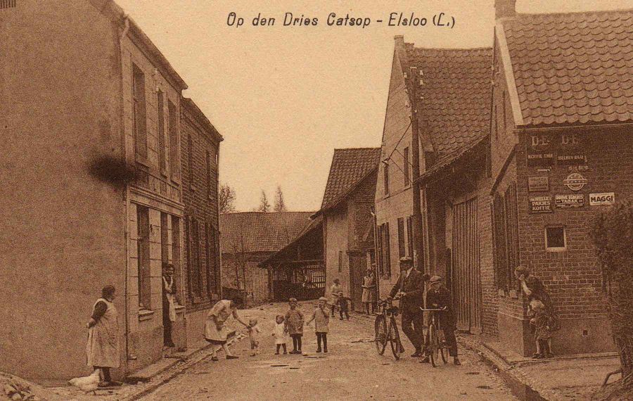 Omdat begin vorige eeuw "even een foto maken" toch een heel gedoe was, trok een fotograaf al snel de aandacht van de dorpelingen. Natuurlijk het eerst van de kinderen die op straat speelden. Hun geschreeuw trok de aandacht van moeder en vaak inwonende oma; en die staan dan ook op de foto. Net zoals de toevallig passerende fietsers die blijven wachten totdat de fotograaf klaar is. Meestal deden de dames nog snel hun schort af zodat ze netjes op de foto stonden. Maar in Catsop is daar rond 1920 blijkbaar geen tijd meer voor geweest.